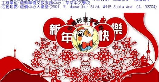 本校將於二月五日(星期日)上午十時半,於橙縣華僑文教中心舉辦2017全校農曆新年“大家來拜年”活動, 敬邀您全家前來參加共同慶祝!